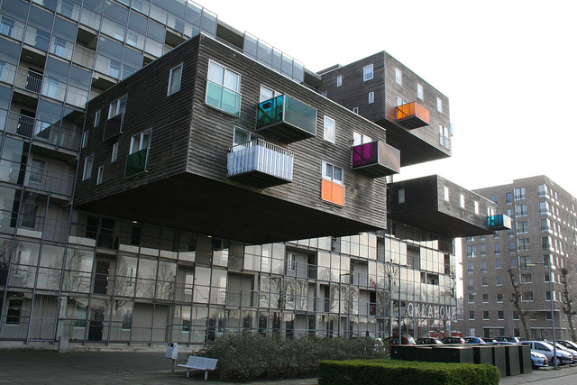 Entre 1994 y 1997 fue construido WoZoCo por la MVRDV, que son las siglas de una oficina de arquitectura y urbanismo de los países bajos, WoZoCo es un complejo de 100 departamentos ubicados en Osdorp, una ciudad al oeste de Ámsterdam. El muy llamativo diseño de este edificio se debe a que algunas de sus habitaciones parecen colgadas de la estructura principal, dándole un toque fantástico y muy original.